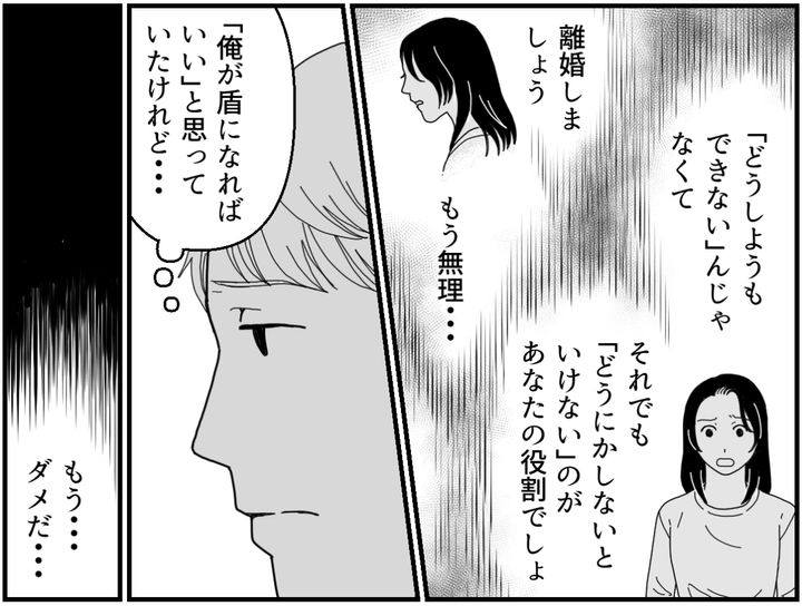 <隠す義母|16年目の記録>現実を見ない両親「妻子守る」絶縁宣言!【まんが:夫の気持ち】