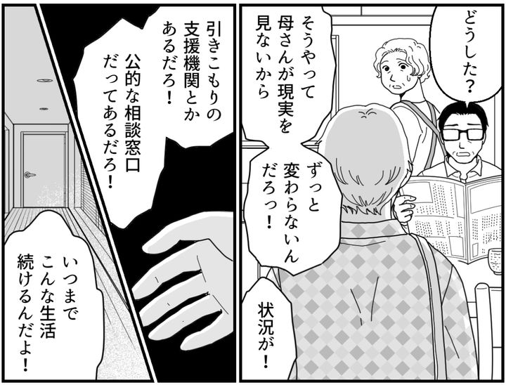 俺が何を訴えても、両親はまったく聞く耳を持たない。「俺が盾になればいい」と思っていたけれど、もうそういう次元の話ではなくなっている。俺は窮地に追い込まれていた。実家の両親は相変わらず現実を直視しようとしていない。