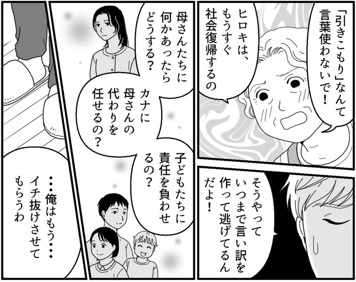 母はこの期に及んで兄貴は「引きこもり」なんかじゃないと言い張っている。いつまでも目の前の兄貴を見ようとせず、言い訳を作って逃げて……。兄貴は放っておいても自立なんかできないって、両親だって分かっているはずなのに。