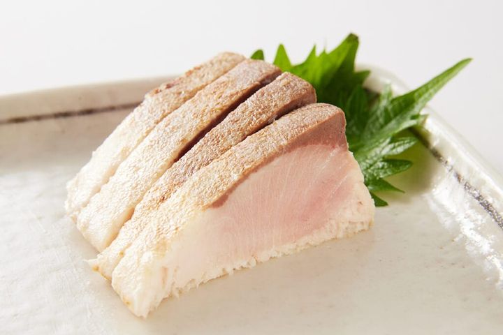 ナッツや明太、イタリアンなど、川畑蒲鉾店でつくるかまぼこは6種類。こだわりは最上級のすり身を使っているということ。スケソウダラの中でもグレードの高いものを使用し、温度管理に最大限気を配りながら加工しています。温度計はもちろん、長年製造に携わる人の目や体感によって温度を調節。バジルが香るイタリアン味は、若い人たちにももっとかまぼこを身近に感じてもらいたいと開発したそうです。シンプルな白いかまぼこは、どんなお皿にどんな風に盛り付けようかと、食べる前からワクワクさせてもらえます。普通のかまぼこと比べると弾力控えめでテリーヌのようななめらか食感。しっかりとかまぼこらしい豊かな香りのあとにハーブ香が鼻に抜けていきます。かまぼこのよさがしっかりと生かされたままワイン片手につまめる、まさに洋風かまぼこ