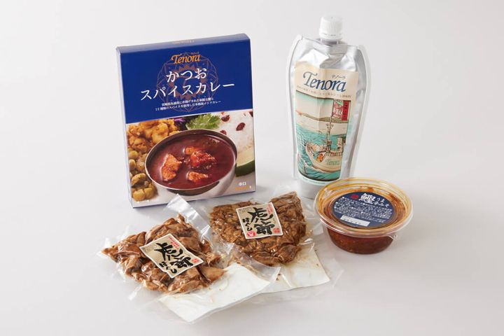 宮崎県日南市の外との浦うら漁協が取り扱う商品のうち人気のものをラインナップ。一本釣りされた新鮮なカツオを地元の甘い醤油で味付けして柔らかく煮込んだ「虎とら節ぶしほぐし」、そこに唐辛子を加えた「虎節ほぐしピリ辛」。カツオの風味、味噌の旨味と唐辛子が相性抜群の「鰹うま辛みそ」。これ1本でプロの味! カツオ出汁の旨味がきいた醤油ベースの調味料「Tenoraテノーラ水揚げされた新鮮なカツオと12種類のスパイスを使用した本格南インドカレーかつおスパイスカレー」のレトルト。この5商品がセットとなっています。地獲れの新鮮なカツオをそのまま加工しているので、どれもカツオの豊かな風味がぎゅっととじこめられています。いわゆる漁師めしを作っているのは地元の料理上手な女性たち。日南の甘めの醤油を使って味付けされた加工品は、ごはんが何杯あっても足りません。スパイス×カツオの本格派インドカレーも新しく、”カツオといえばタタキ”という常識がきっと変わるはず。