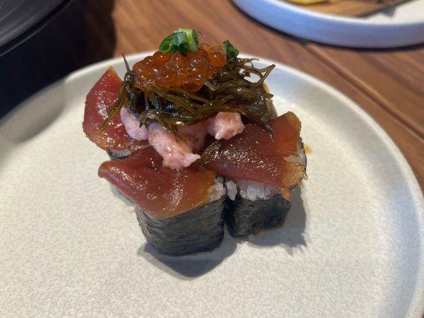 私は本鮪漬けと松前漬けのこぼれ寿司と