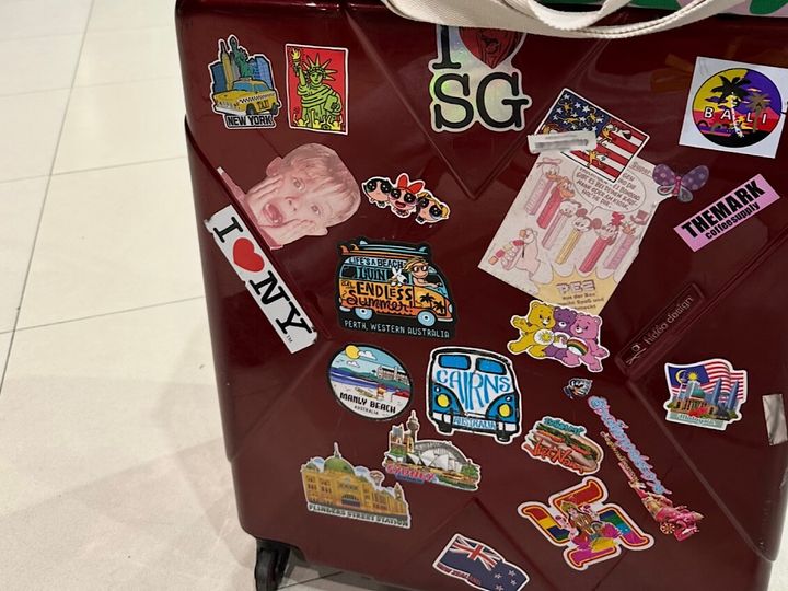 こんな感じでステッカーをキャリーケースに貼り、自分だけの世界にひとつのキャリーケースを持ち歩くのも旅をする時の楽しみのひとつです。