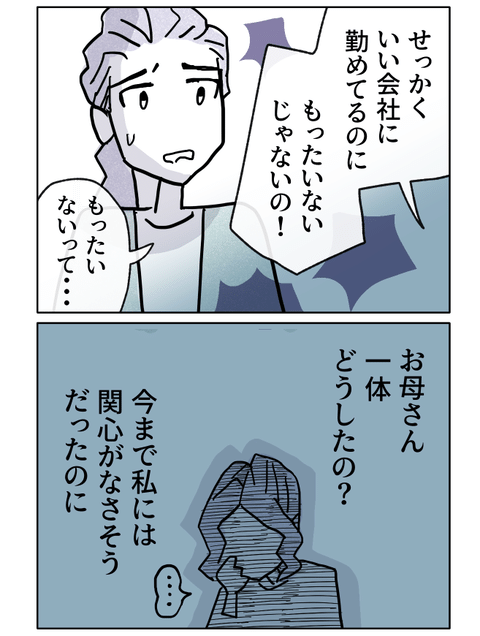 仕事を辞めると宣言した凛に、母は思いがけず「もったいない」と声を荒げます。
