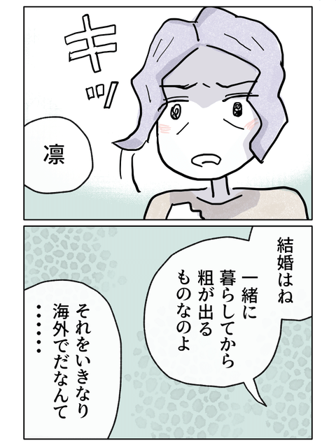 そしてついには「結婚をやめなさい」とまで言い放つ母。予想もしなかった展開に、凛はただ戸惑うばかりなのでした。