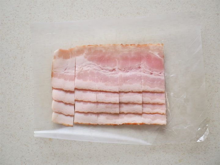 4. ベーコンを1cm幅程度に切る。