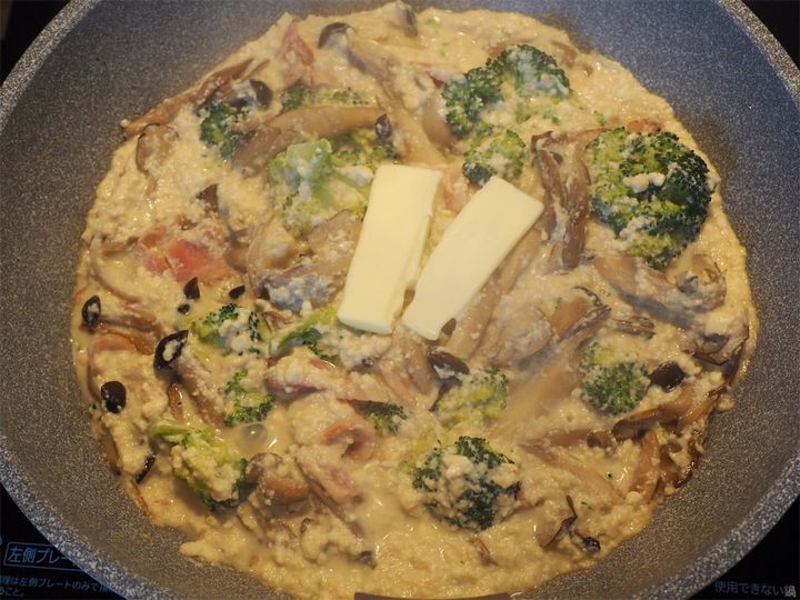 最後にチーズを乗せることやきのこの旨味を考慮して、味は薄めに調整するといいそう!