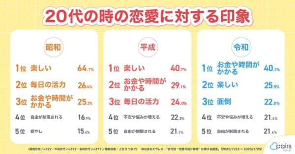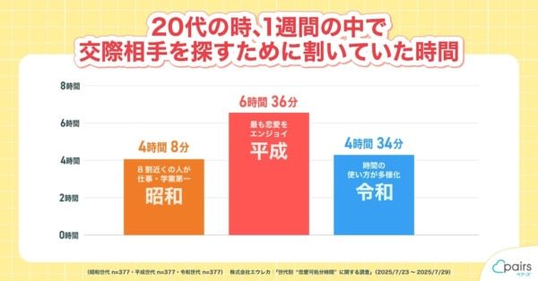 平成世代が一番恋愛を楽しんでいた!? ペアーズが「昭和・平成・令和」の恋愛に割いた時間を一斉調査