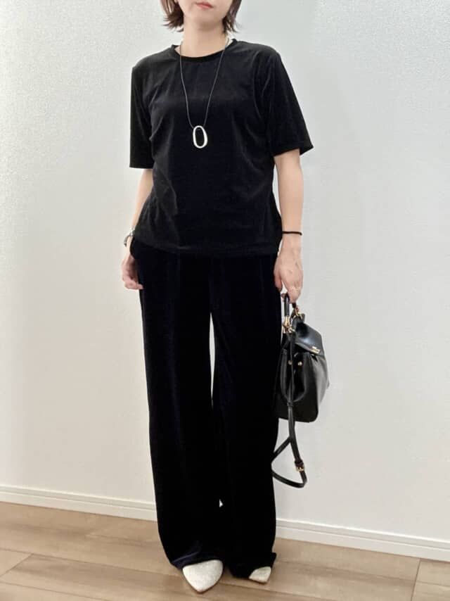 ラクちんなのに“部屋着見え”しない!ベロア素材で品よく解決