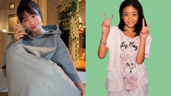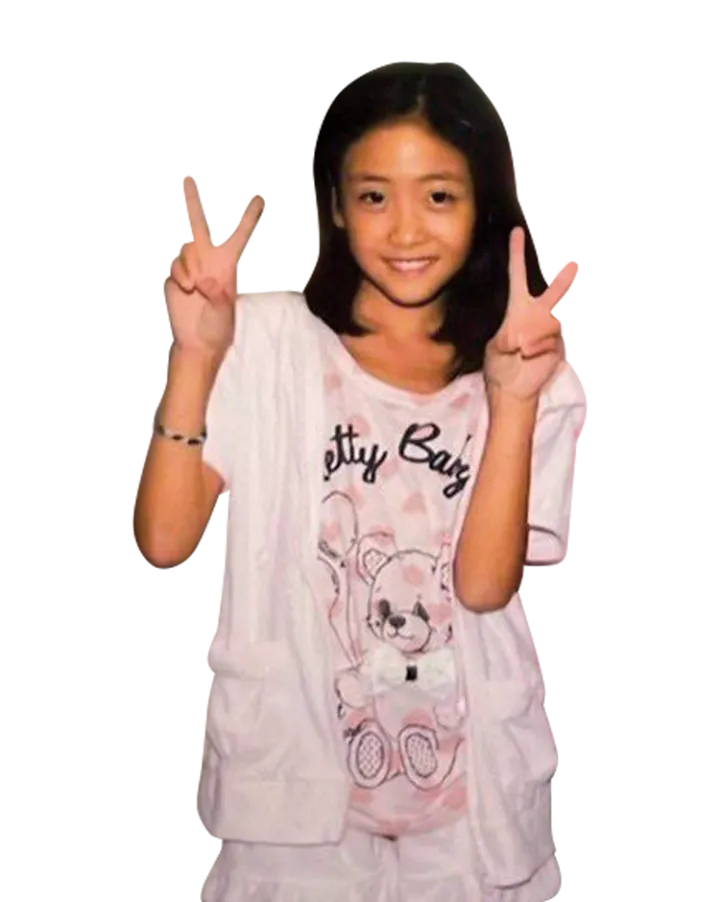 「小学校5年生くらい。写真で着てるパジャマがすごく流行ってて、修学旅行にどうしても持っていきたくて全身そろえて買ってもらった思い出♡