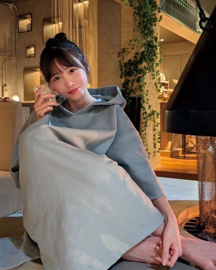 「マネージャーさんに、「あまりにも”櫻井優衣”だから隠れなさい」と言われて、上着を借りて影になりきっている写真です」