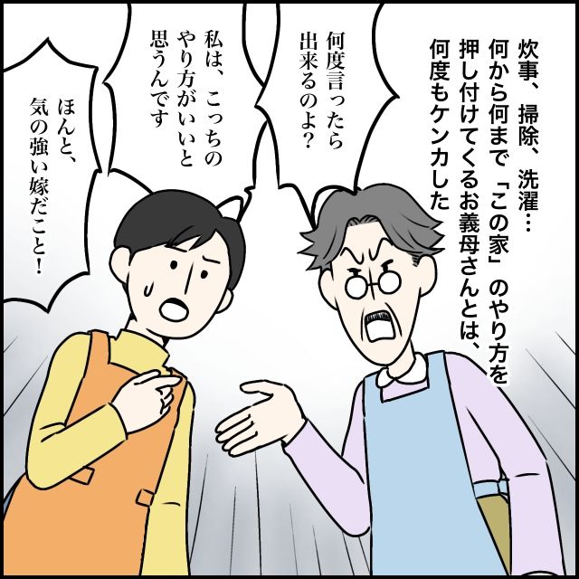炊事、掃除、洗濯・・何から何まで「この家」のやり方を押しつけてくる義母とは何度もケンカすることに。