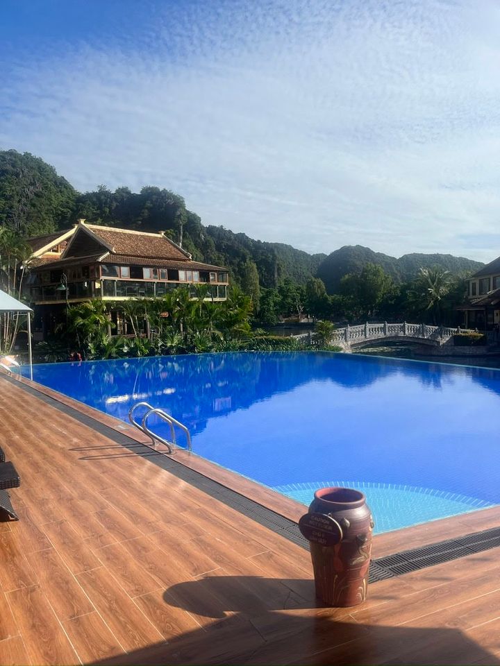 ニンビンの雄大な自然を拝みながらプールに入れるなんて素敵♡