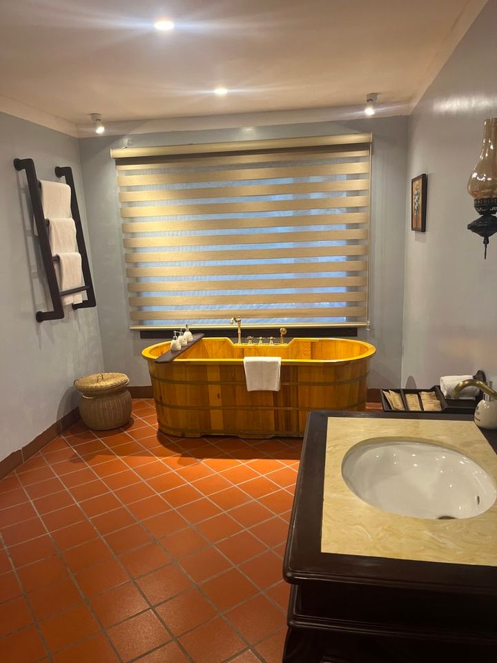 ほんと、バスルームはここで暮らせるくらい広いです。ウッド製のバスタブに加えて、独立したシャワールームも完備