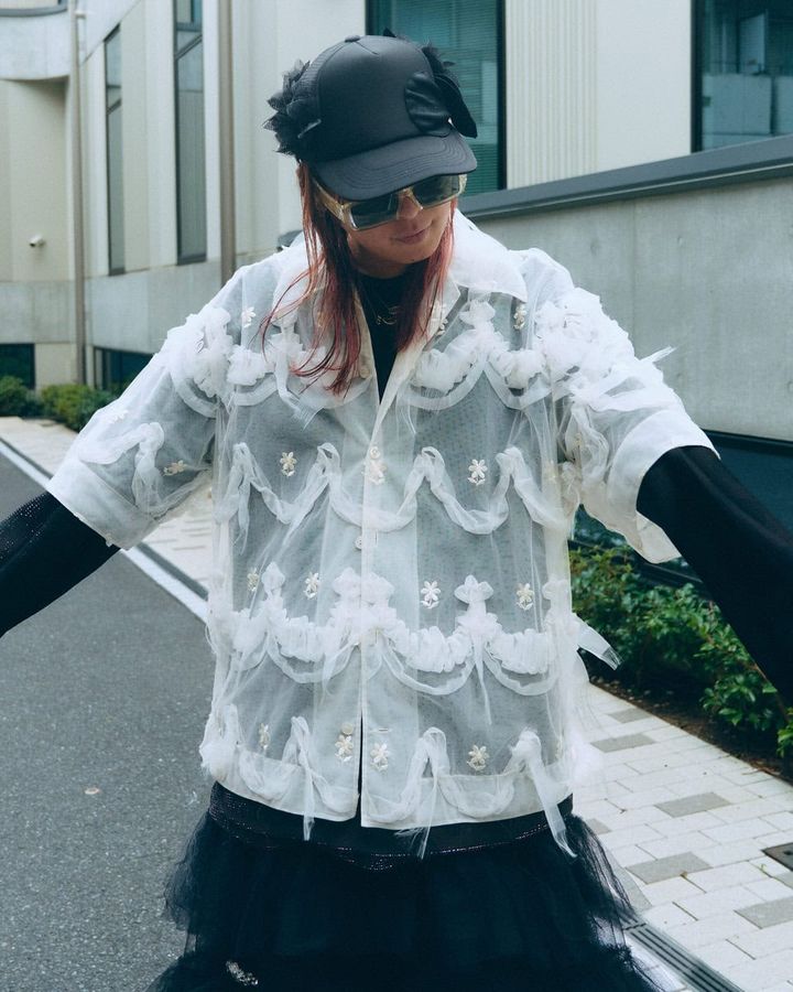3. 【スナップ】チュール素材を重ねることでモノトーンなのに華やかで軽やか