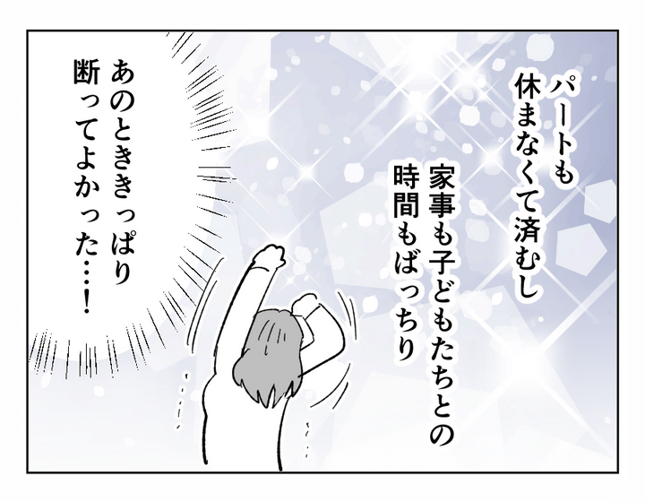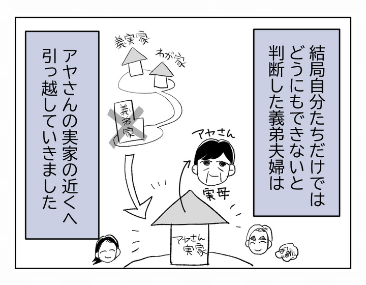チサトさんの義妹・アヤさんは、フルタイムで働いています。しかしその息子・トウマくんは体調を崩して保育園を休みがち。アヤさんは、「仕事を休めない」といつもチサトさんに強引に預けて出社していきます。しかし、とあるきっかけで「あの家はネグレクト」とうわさされるように。チサトさんがうわさを広めたと誤解したアヤさんは、チサトさんを「たかがパート」と侮辱。結果、もう絶対に預からないと宣言されてしまいました。あてにできる場所がなくなったアヤさん一家は、アヤさんの両親の家の近くに住むことになりました。