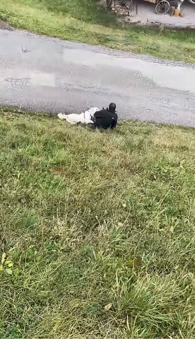 3. 抱きつく場所が悪かった!?パパさんと愛犬がふたりそろって斜面から転がり落ちた!!【海外・動画】