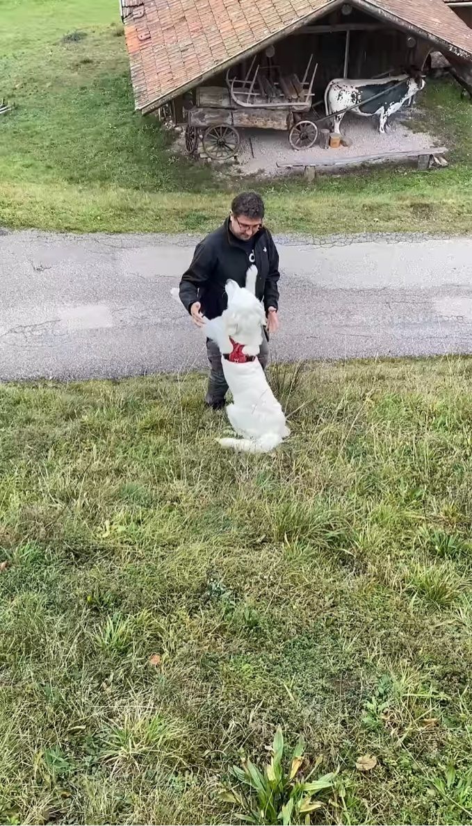 斜面で体格のいい愛犬が抱きついてきたら、こんな展開になるのも無理ありませんね!