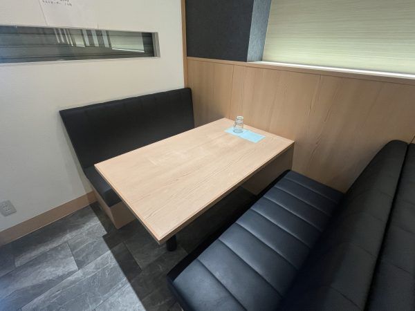店内は白と木目を基調にした清潔感ある空間。 ボックス席で区切られた半個室のようなレイアウトが心地いい。