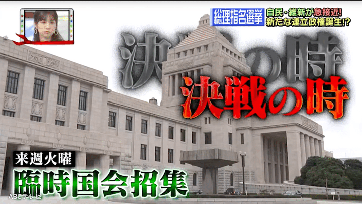 放送日当日、日本の政局は、翌週の臨時国会召集を目前に「決戦の時」を迎えていた。自公連立が崩壊し、日本維新の会が連立に急浮上。連立か連携か? 今回の総理指名選挙について政治ジャーナリスト青山和弘氏のミカタは——。