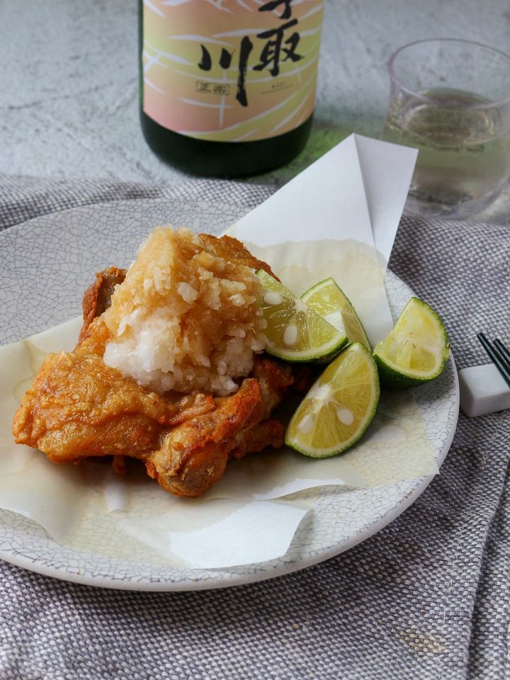3. すだち愛が止まらない!秋の夜に日本酒と味わう「鶏の素揚げすだちおろし」