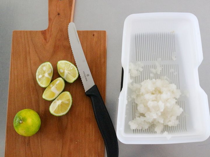 1. すだちは4等分に切り、大根は皮をむきおろし器でおろす。