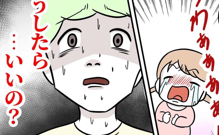 倒れたときに頭を打ってしまったノゾミさん。目を覚まさない様子にツバサさんは不安になりますが、「世話は僕がする」と義母の提案を断ります。しかし、帰宅してお風呂に入れようとするとサクラちゃんは嫌がり号泣。困惑し、チャットサービスを使って解決策を得るのでした。