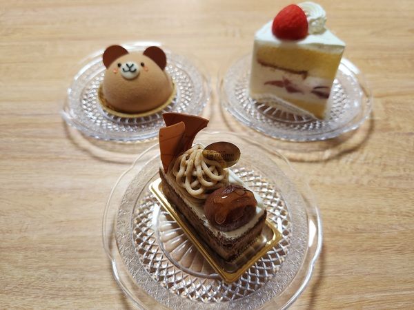 右上から時計回りに「ショートケーキ」700円、「贅沢栗ショコラ」700円、「ミルキーベア」640円