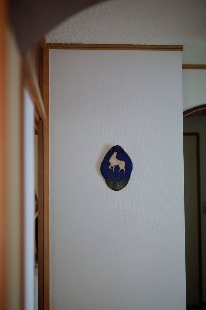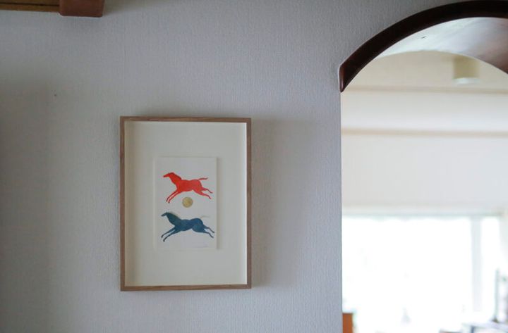 ー玄関からリビングへ向かう場所にも一枚。描版画をはじめてからは、大好きな馬をモチーフにした作品を発表している。