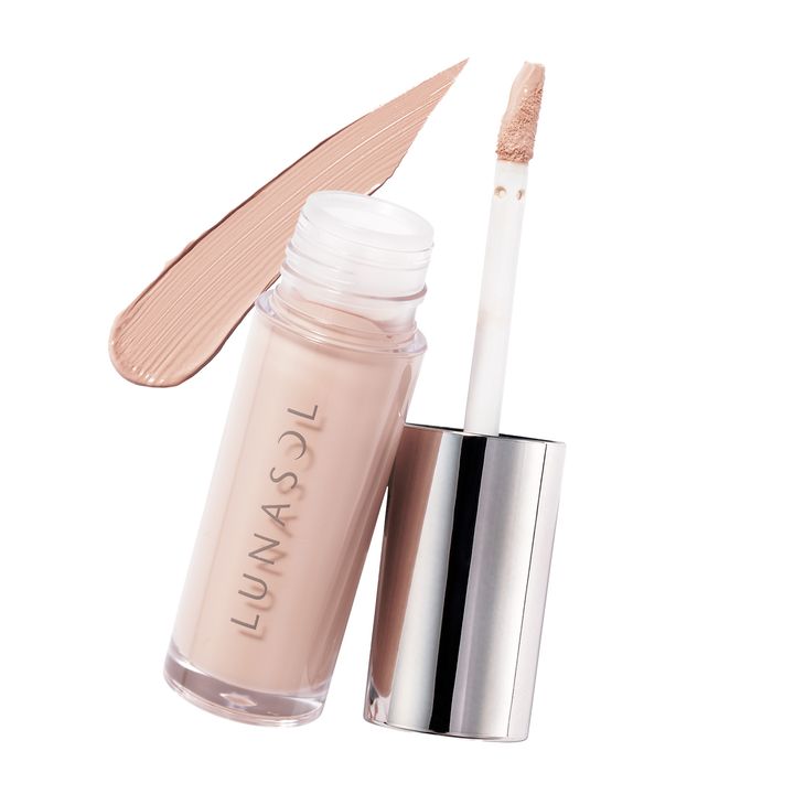 ハイカバーながら薄く伸びてしなやかにフィットする進化系コンシーラー。ルナソル シームレスコレクティングリクイド 02 ¥4,400(カネボウ化粧品)