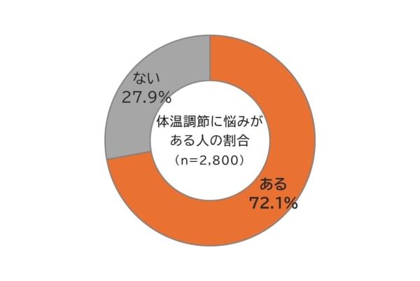 ■72.1%の人が「体温調節の悩み」を感じていることが明らかに