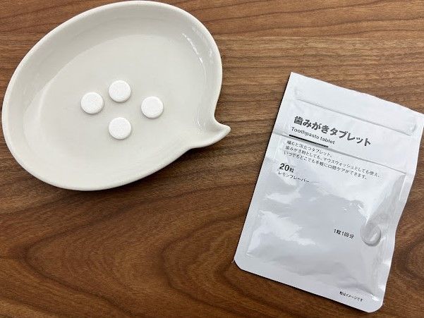 噛むと泡立つタブレット。歯みがき粉やマウスウォッシュとしても使えるアイテムです。歯みがきはできないけれどスッキリしたい、というときに役立つこのタブレットは、防災用品としても使える優れもの。学校で歯みがきがしにくいから欲しいといわれて購入し、私も職場に持っていっています。ちょっとお高めなので、無印良品週間でまとめ買いしようかなと思っています!
