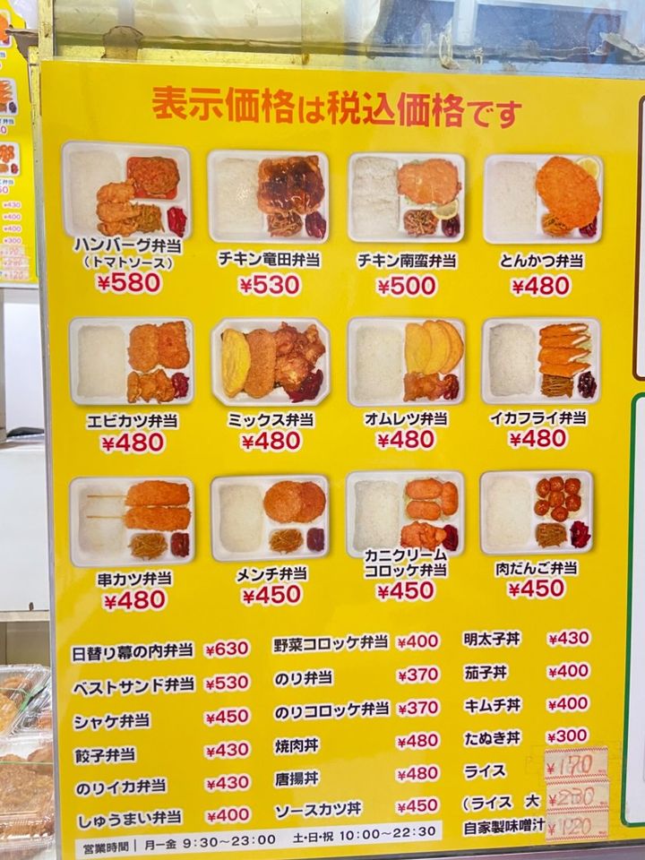 店員さんにおすすめをお聞きすると、茄子から弁当・カラマヨ明太子丼・唐揚弁当等が、人気商品でおすすめとのことでした。
