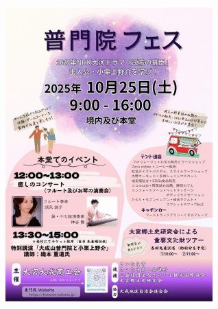 【大宮】NHK大河ドラマ「逆賊の幕臣」ゆかりの地で「普門院(ふもんいん)フェス」開催:10/25(土)