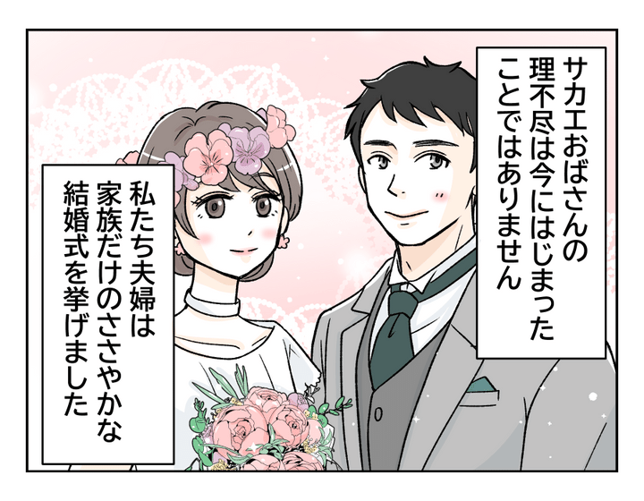 結婚してしばらくのあいだ、ミナさんはサカエおばさんの存在を知りませんでした。しかし結婚して数年後、義実家でとうとう出会ってしまったのです。サカエおばさんは「善良な義理のおば」という仮面をかぶっていたので、ミナさんも「親戚なのだから」と気にもとめず連絡先を交換してしまいました。こんな人だとわかっていれば、連絡先なんて絶対教えないですよね……。こうしてミナさんは、サカエおばさんのターゲットにされてしまったのでした。