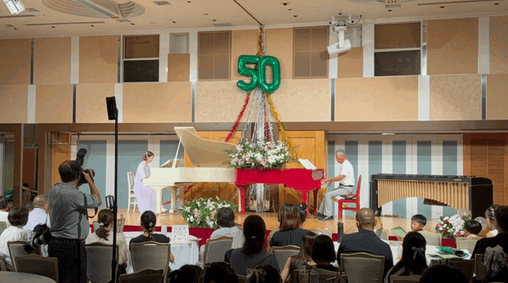 夫婦共通の趣味はゴルフ。結婚してから始めた妻もすっかりはまり、2人して暇さえあれば広大な庭でアプローチの練習に励んでいる。ピアノも共通の趣味で、自宅にはなんと2台も。華麗なるピアノデュオを披露してくれた。夫は3歳から13歳まで、妻は小学1年生から中学1年生まで習っていて、近年になって再開。ピアノの先生が同じだったことが出会いのきっかけとなる。