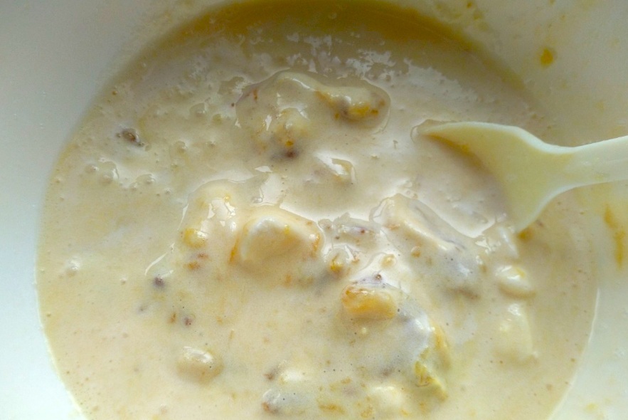 3.焼きいもをちぎって加え、好みの粒感になるまで混ぜ合わせます。