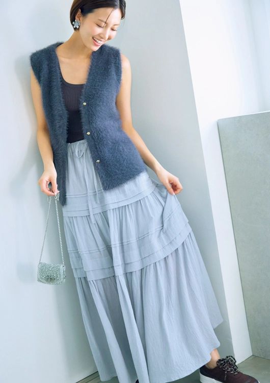 ふんわりベストで旬度の高いコーデに