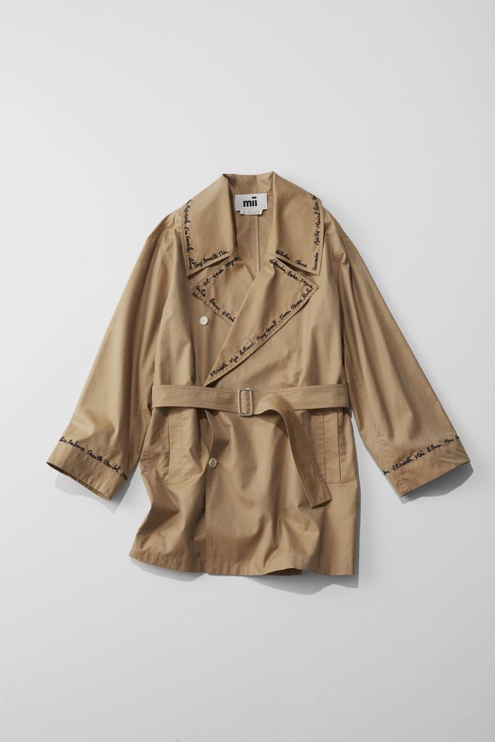 襟周りと袖口のレタリング刺繍の他にないデザインが目を惹くトレンチコート。大き過ぎないサイズとコンパクトな丈感で合わせるボトムスを選びません。ファージレを重ねたりインナーをタンクトップにしたり、レイヤード次第で秋口から冬を超えて春まで長く使えるのも嬉しいポイント!