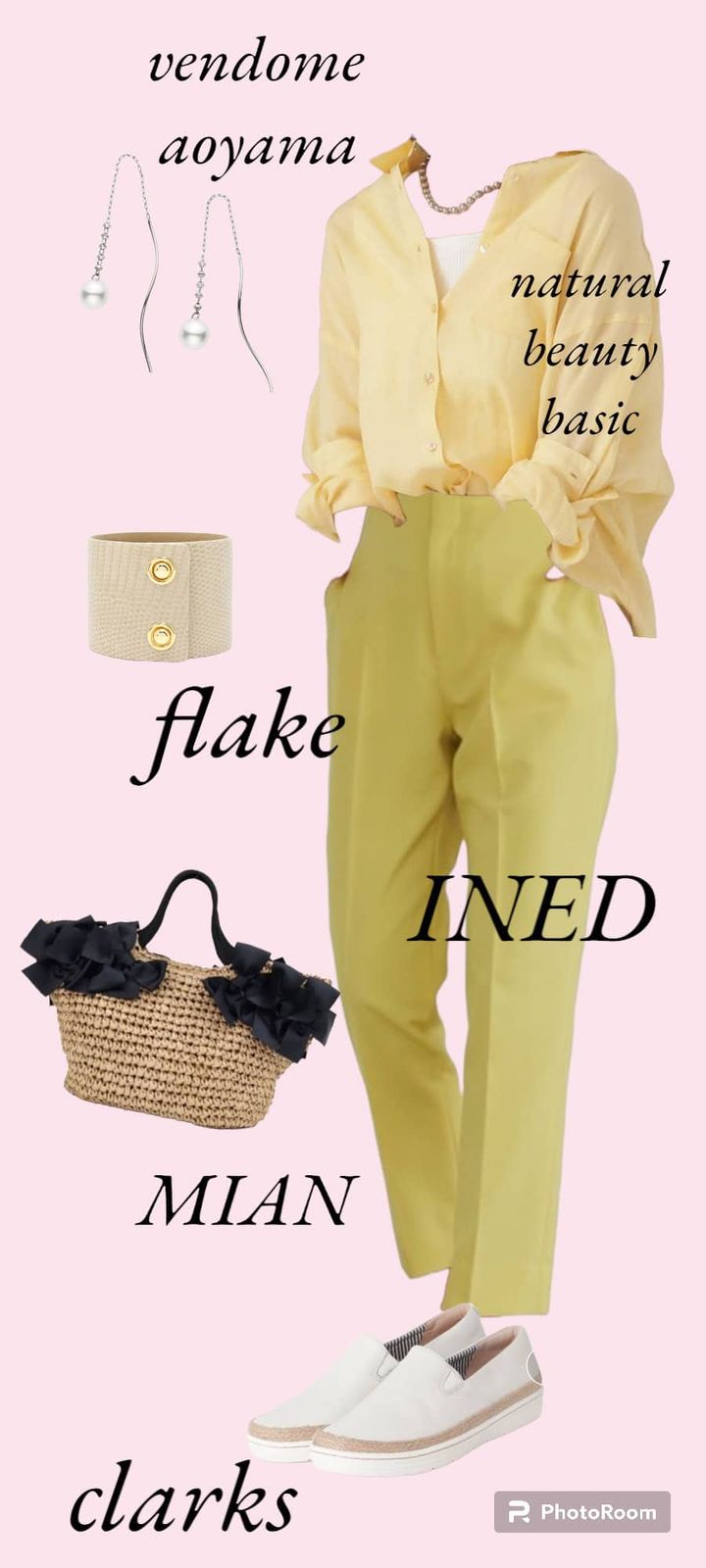「今月号の誌面に登場している名古屋読者の××さんは、コンサバテイストな主婦の方です。彼女から『夏の"カラーONカラー"のコーデに挑戦したい』と言われました」と相談されました。さてどうしますか? お勧めのコーディネートを1体作ってみてください」 という課題に対する吉原さんのスタイリング提出(2023年5月)