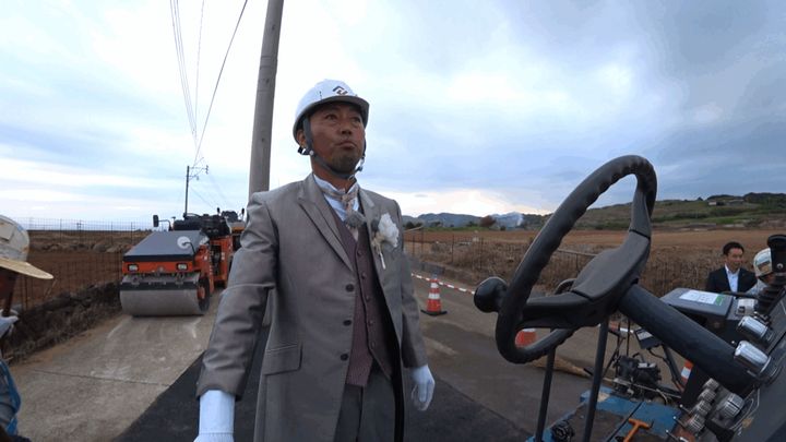 『探偵!ナイトスクープ』「工事現場で結婚式を挙げたい!」ダンプ運転手の妻とアスファルト工の夫が道路舗装しながらの式を挙げる!?