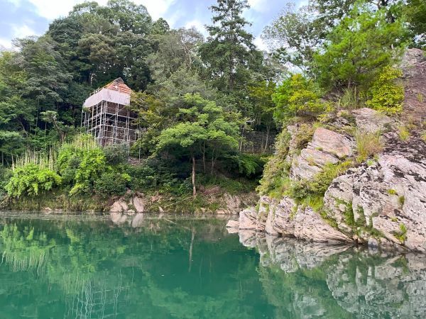 遊覧では臥龍淵と国の重要文化財である臥龍山荘の不老庵を巡る四国八十八景に選定されている景色もじっくりと見ることができます!船頭さんは臥龍山荘や鵜飼の説明の他、色々な話を軽快な語り口で面白く話してくださっていたので、船内は時々笑いに包まれながらとても和やかに過ごせました。