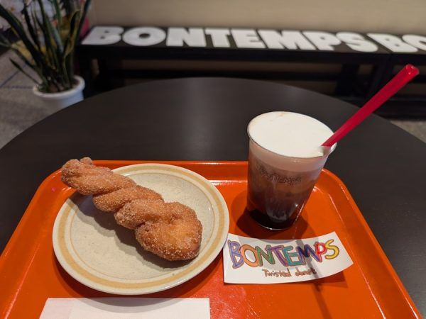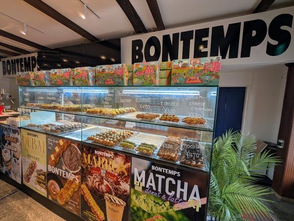 「BONTEMPS」さんは、クァベギという韓国のねじり揚げドーナツが食べられるお店。 店内に並んだおいしそうなドーナツの看板がまるで韓国にいるような雰囲気。 そしてショーケースの中にはカラフルなドーナツがずらり。