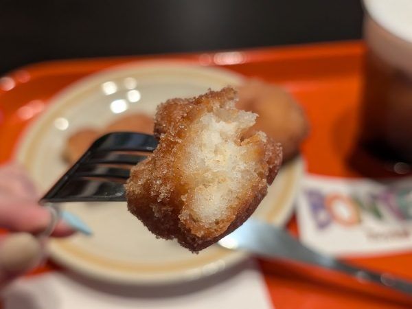 初めて食べるクァベギにドキドキしながらまずは一口。 カリっとした表面にモッチリとした生地。 丸い形のドーナツとは全然違った新しい食感。