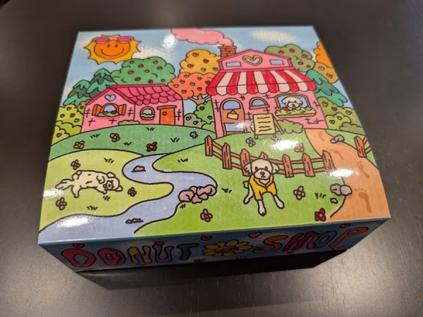 子供のためにドーナツをテイクアウト。 ドーナツを4つ買うとめっちゃ可愛い箱に入れてもらえちゃいます♪