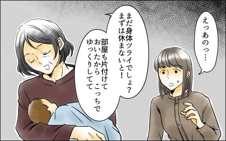 無事に出産して退院すると、家の雰囲気が変わっていました。義母はすかさず赤ちゃんを取り上げ、私に向かって笑顔でゆっくりしているように言ってきて…。