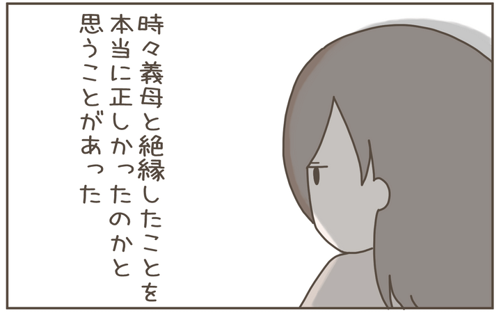 うまく距離感をとりながら、孫の育児に関わろうとしている現在の義母のことを思うと、「絶縁」という選択が本当に正しかったのか、思いを巡らせることも…。