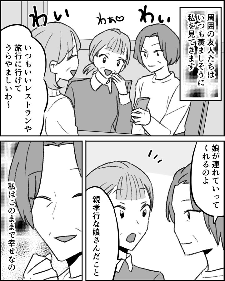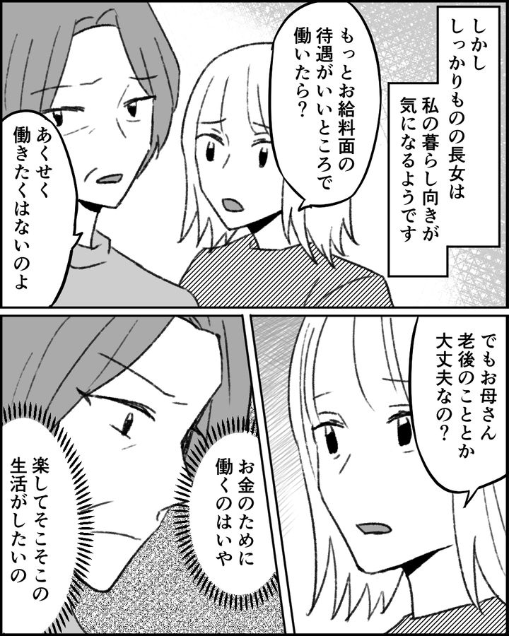 女手ひとつで苦労して育てたかいがありました。これからは母だけでなく、長女にも頼れそうです。ただ私の暮らし向きにアレコレ首を突っ込んでくるのは面倒だけれど…今度はなにを奢ってもらおうかしら。
