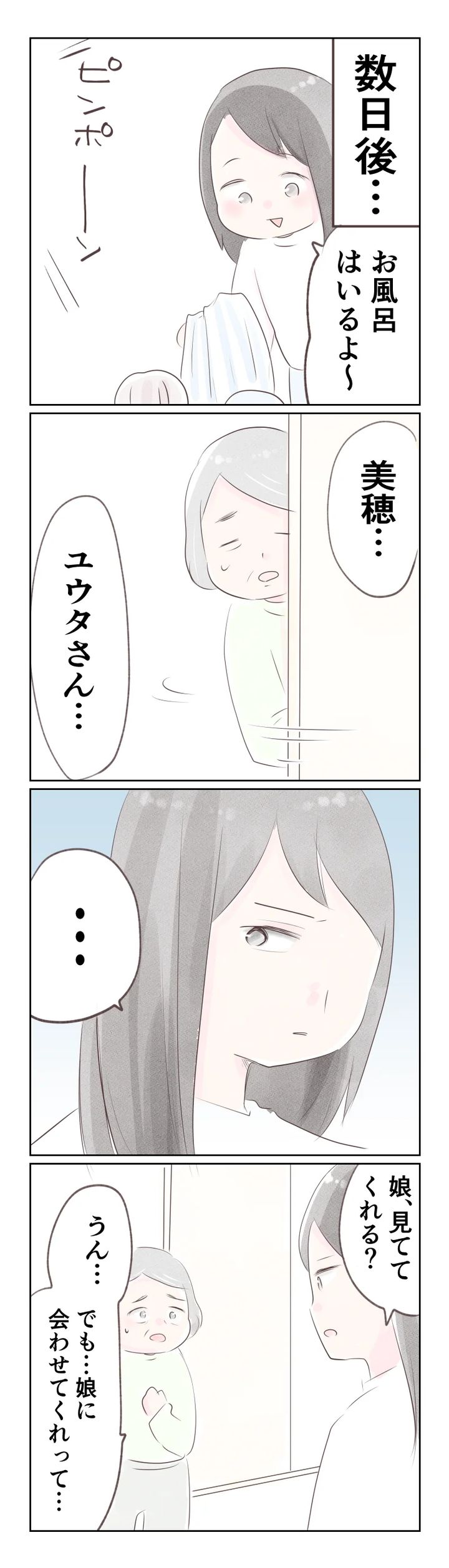 娘たちに会いたいと言い出したことも何かたくらみがあるような気がしますが…美穂さんはこの涙に騙されてしまうのでしょうか?