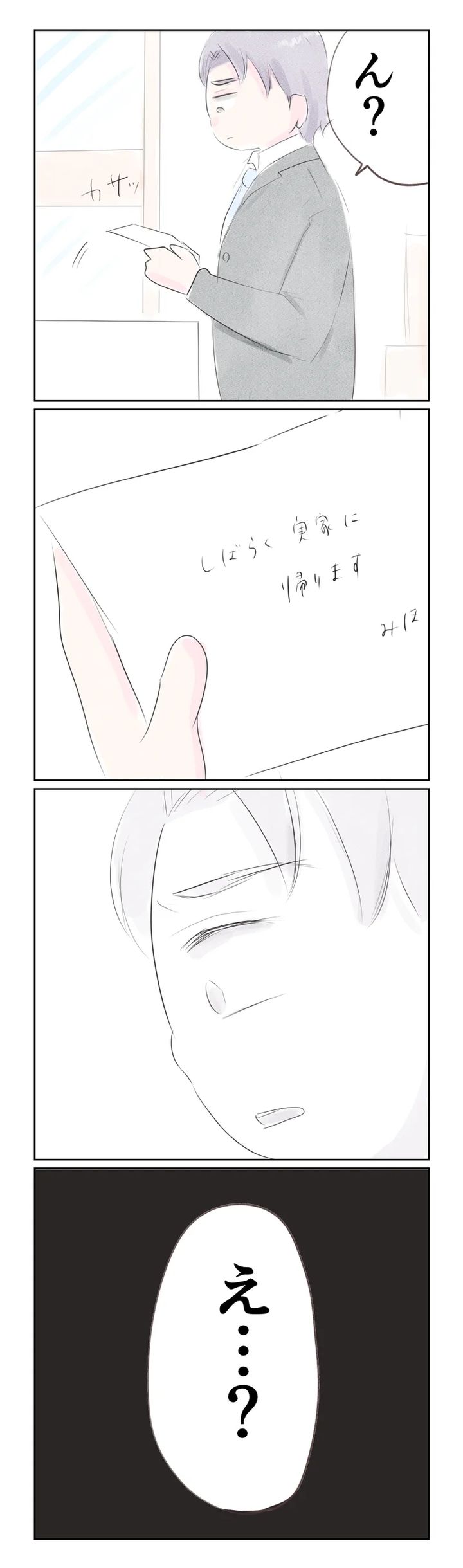 その朝は美穂さんを無視して黙って出社したユウタさん。帰宅すると家がやけに静かなことに気付きます。